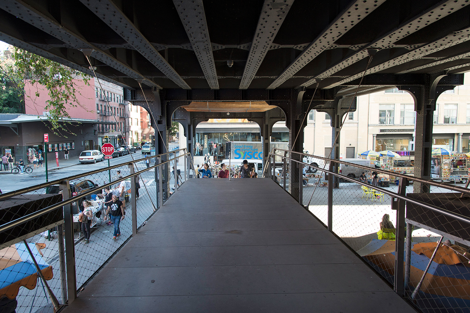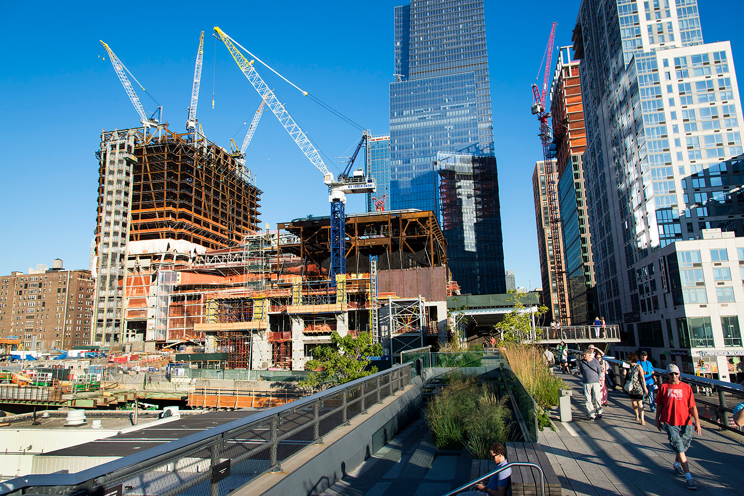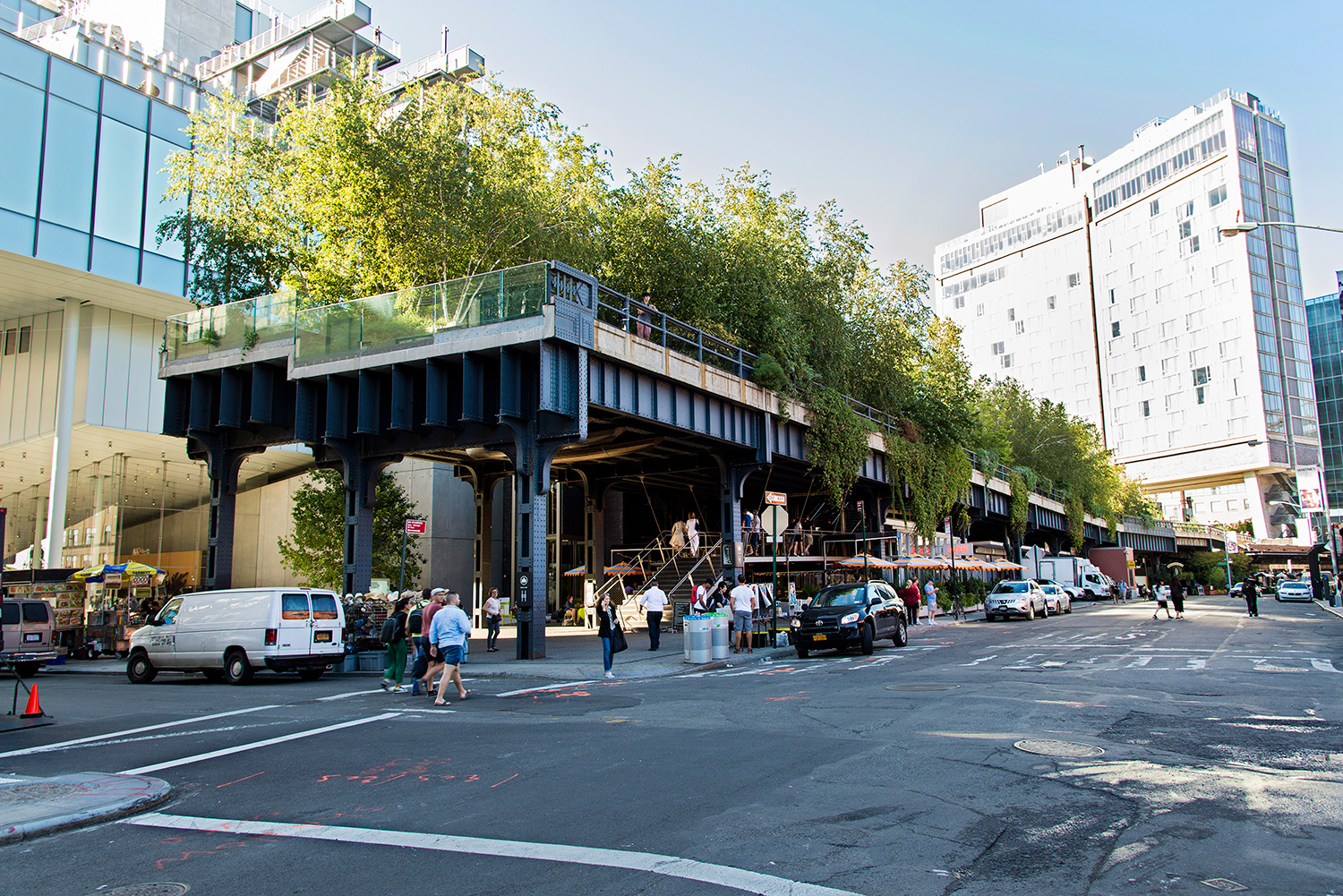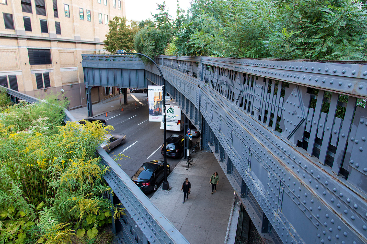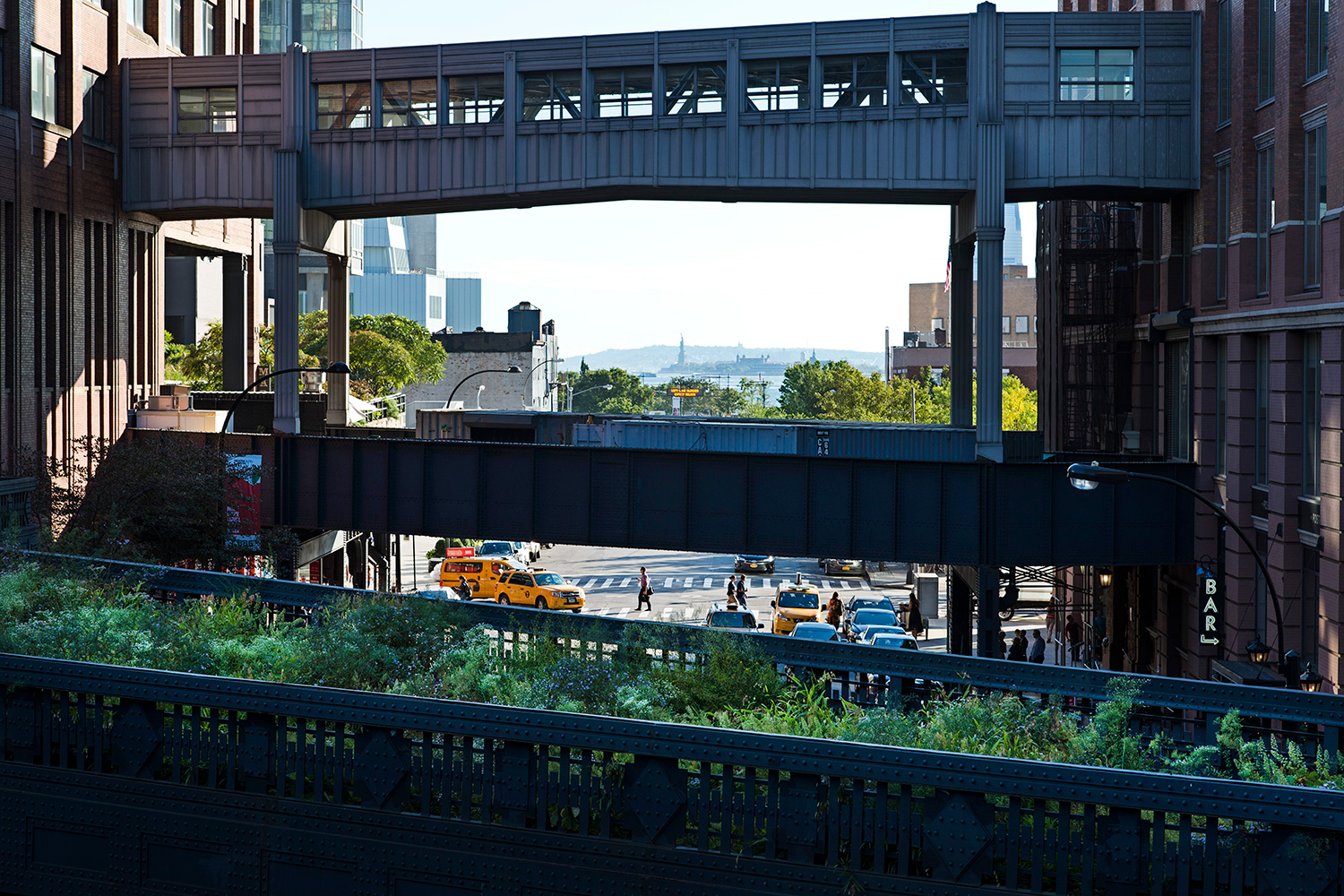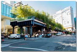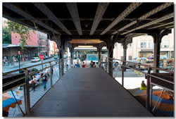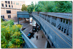 La high line fait partie des incontournables. Fin 19° siècle, une voie ferrée dessert le sud de Manhattan. Mais les croissements, la circulation intense, provoquent de très nombreux accidents mortels. Mais en Amérique, tout est possible. La solution, construire une voie ferrée au-dessus des rues supprimant carrefours, et donc ... problèmes. Désaffectée depuis 1980, elle est aujourd'hui partiellement réaménagée en promenade offrant des points de vue unique sur la ville. Une découverte en commençant par le sud sur Washigton Street et en remontant jusqu'àu 655 de la 34th street avec un des dépôt du métro de New-York.
